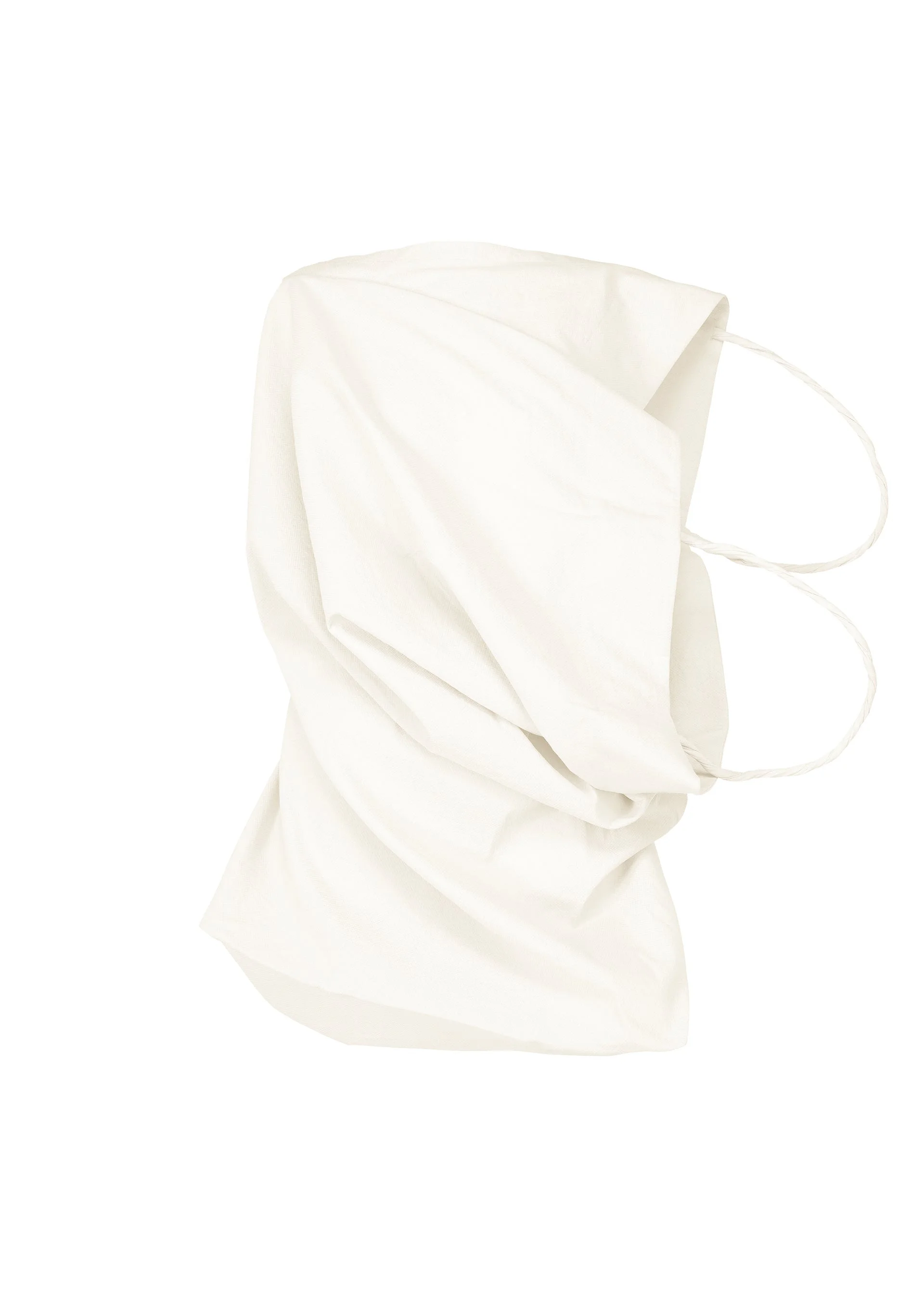 This top features a design that looks as if you've put your body directly through a paper bag. "Can anything become clothing if you put your body through it?" This item was born from such a question. Made with stretch material using Japanese washi paper and cotton, the dobby weaving recreates the characteristic texture of paper, creating fresh fabric volume. It's also possible to remove the paper bag handle parts and wear it on its own. Product Information Material: 41% non-classified fiber (washi paper), 36% nylon, 14% cotton, 9% polyurethane. Made in Japan. others:Button (back)