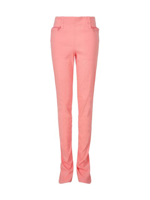 These pants feature a unique design with attached shoe covers. Made with stretch material using Japanese washi paper and cotton, the dobby weaving recreates the characteristic texture of paper, creating fresh fabric volume. Product Information Material: 41% non-classified fiber (washi paper), 36% nylon, 14% cotton, 9% polyurethane. Made in Japan. Waist specifications:belt loop Pocket (position):Front and back, both sides others:Zipper (back)