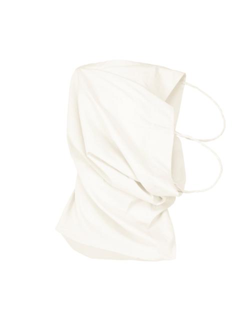 This top features a design that looks as if you've put your body directly through a paper bag. "Can anything become clothing if you put your body through it?" This item was born from such a question. Made with stretch material using Japanese washi paper and cotton, the dobby weaving recreates the characteristic texture of paper, creating fresh fabric volume. It's also possible to remove the paper bag handle parts and wear it on its own. Product Information Material: 41% non-classified fiber (washi paper), 36% nylon, 14% cotton, 9% polyurethane. Made in Japan. others:Button (back)