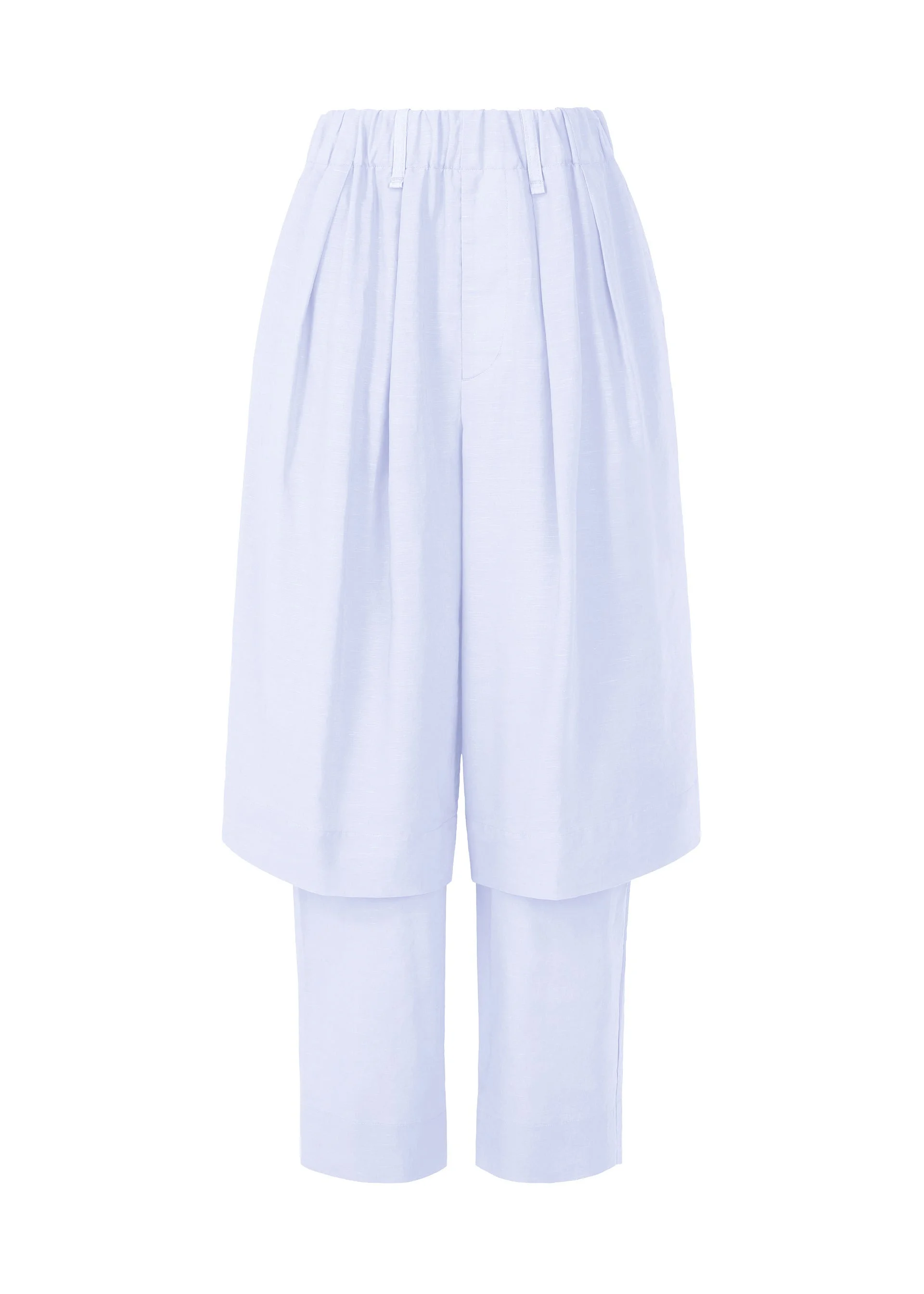 These pants are characterized by their taut yet comfortable texture and design with a layered look. They are made from thin cotton/linen shirt fabric with a rich slub texture. The fabric undergoes low-temperature mercerization processing once to enhance its firmness, tautness, and crispness. By slowly garment-dyeing the pants at a low temperature after sewing, the taut fabric takes on a soft texture akin to crumpled paper, with a comfortable feel against the skin. Product Information Material: 60% cotton, 40% linen Country of origin: Japan