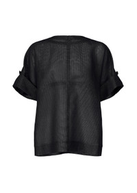 This round-neck, short-sleeved top is made from fabric with a unique texture, inspired by paper in ancient times made from the papyrus plant. The fabric is woven by intertwining thick cotton, ramie, and Japanese Washi paper threads, each dyed in subtly different tones, creating a moderate sheerness and rich color depth. It is characterized by its grid-like tape design that makes you sense a framework. The tape is applied to follow the body’s lines and functions as buttonholes. Product Information Material: Unclassified fiber (Japanese paper) 45% Ramie 38% Cotton 17% Tape: 100% cotton Country of origin: Japan neckline/collar:round neck others:Button (back/sleeve)