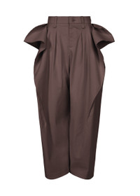 These pants are characterized by their lightness despite the voluminous design, made using fabric that has the moderate tautness of Japanese Washi paper and rayon. They feature an impressive design on the sides with an envelope-like structure.