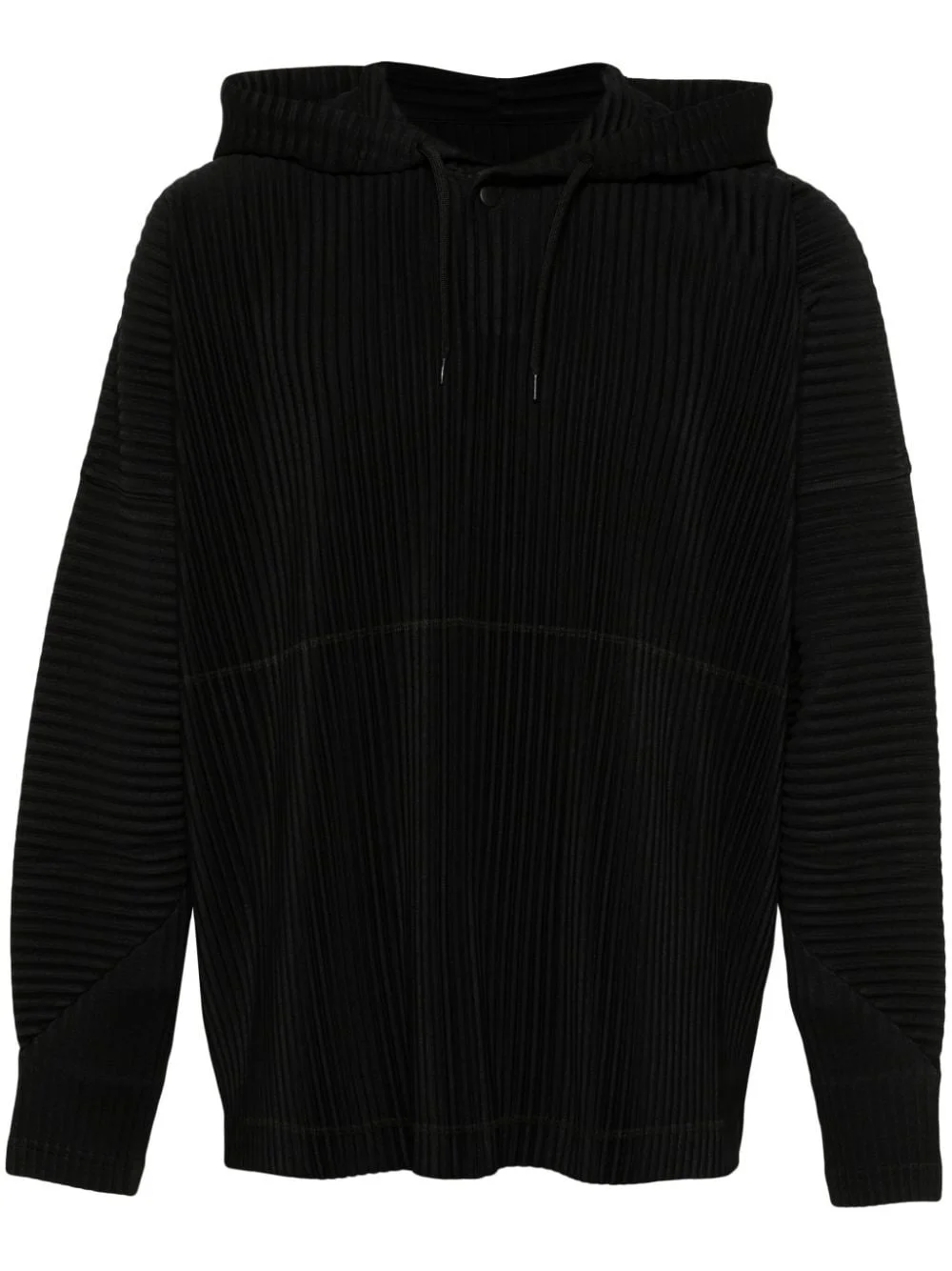 pleated drawstring hoodie Highlights - Black - Fully pleated - Drawstring hood - Drop shoulder - Long sleeves - Front pouch pocket - Straight hem - When buying this unisex item, keep in mind that it is graded in standard men's sizing. Imported Composition Polyester 100%
