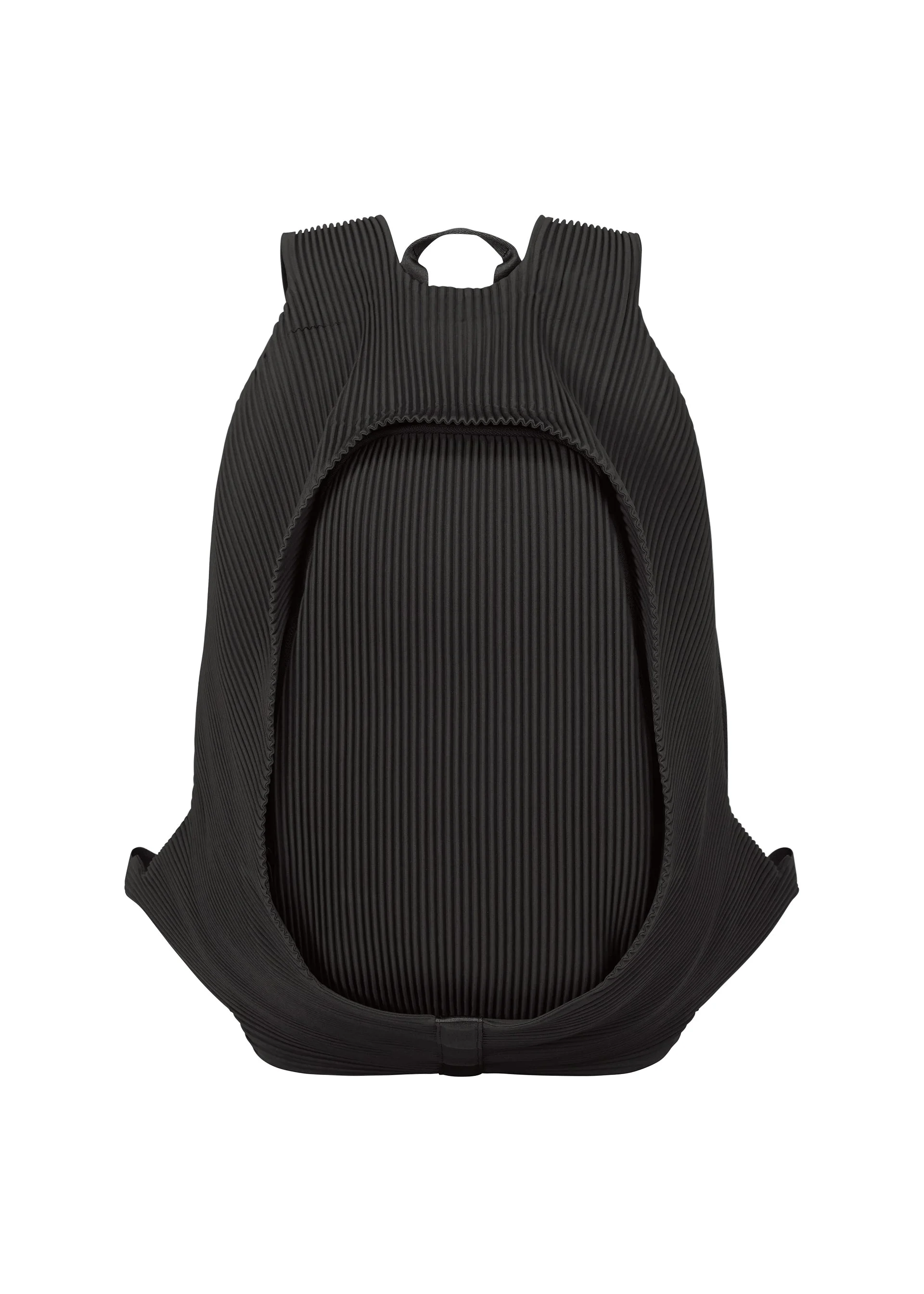 This backpack is characterized by its rounded form. The design combines functional features such as a separate front pocket, a laptop sleeve, and a bottle holder. It features a minimalist look and fitted feel created by applying pleats seamlessly to part of the shoulders. Product Information Material: 100% Polyester (Resin Bonded) Lining: 100% Nylon Tape: 100% Nylon Made in Japan Inner pocket:can be outer pocket:can be Opening and closing section:fastener
