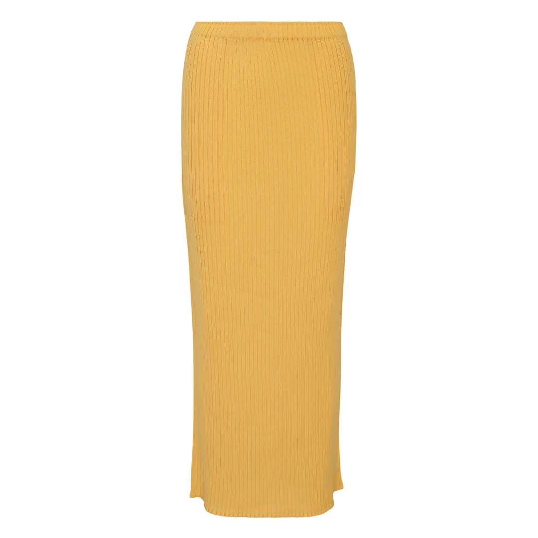 600061824YEL002 / IM56FG652/00/54/MAR - Permanent pleating technology - Elasticated waistband - Midi length design - Machine washable pleated fabric - Straight column silhouette - Lightweight technical construction ISSEY MIYAKE Pressed Flora Pleats Solid Pleated Skirt delivers the brand's signature pleating technology with elegant midi-length sophistication. Crafted from technical pleated fabric in warm golden yellow, featuring the innovative permanent pleating that maintains its structure through wear and washing. The streamlined silhouette and signature PLEATS PLEASE construction create a versatile foundation piece for contemporary wardrobes.