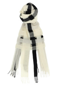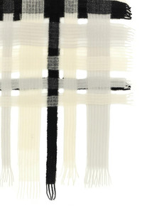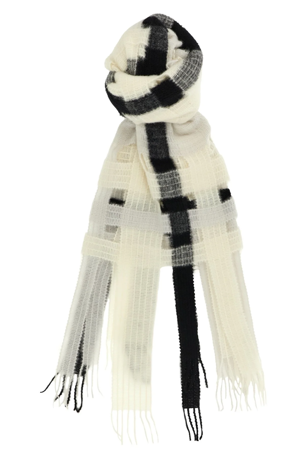 cod. IM58AD10517 'Raschel Wave stole' lightly brushed wool scarf, woven with contrasting dyed threads, fringes Color: Black Size & Fit: 212 x 110 cm Composition: 100% wool Made in: Japan