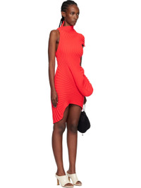 Rib-knit minidress. · Asymmetrical stand collar and hem · Sculptural draping at side seam Supplier color: Red 100% polyester. Made in Japan 252809F052006