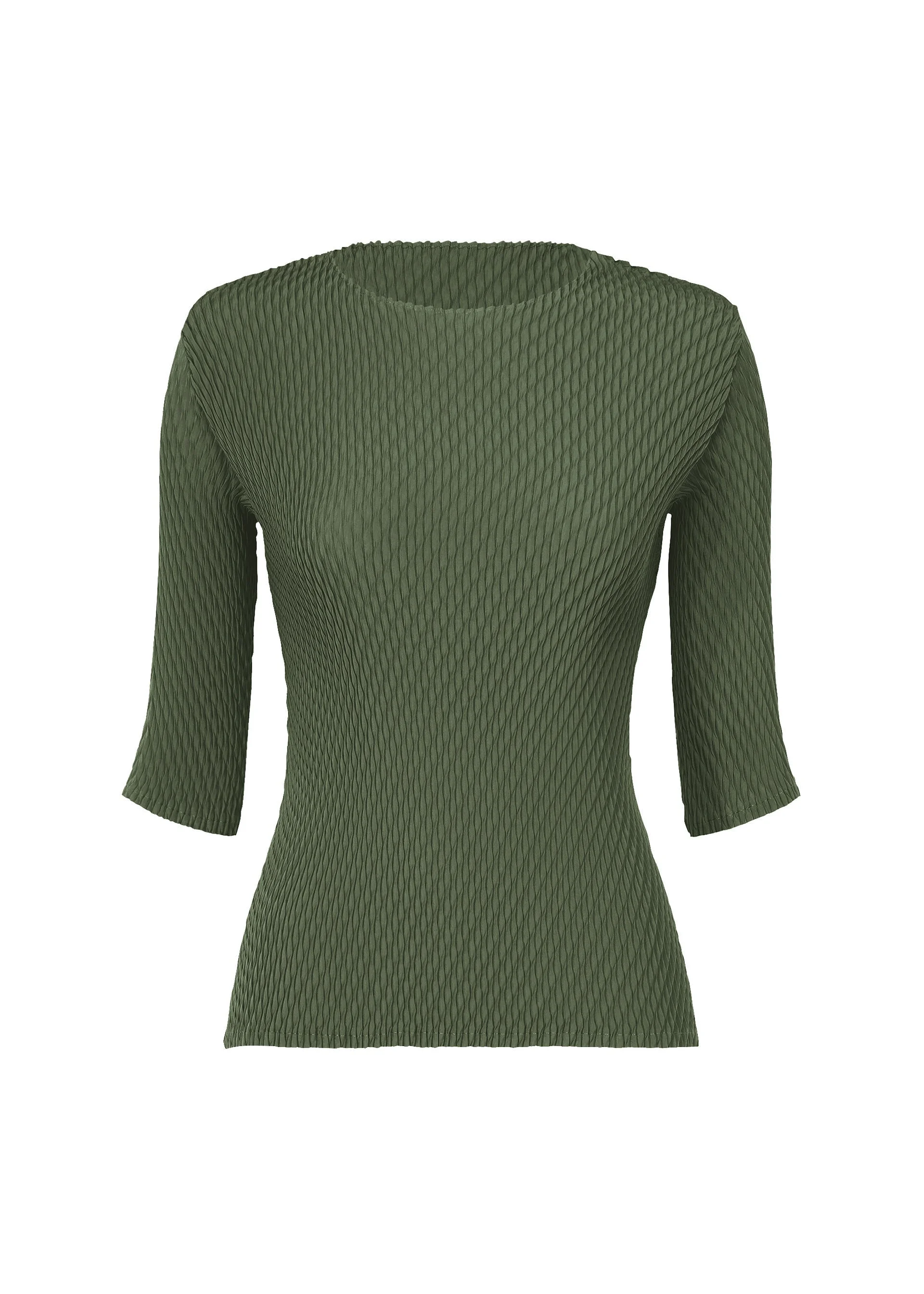 This round-neck top is characterized by a sleek silhouette and relaxed fit, achieved through a double-pleating. The size of this product varies slightly from item to item. Please note this in advance. Product Information Material: 100% Polyester Made In Japan Neckline / collar:Crew neck