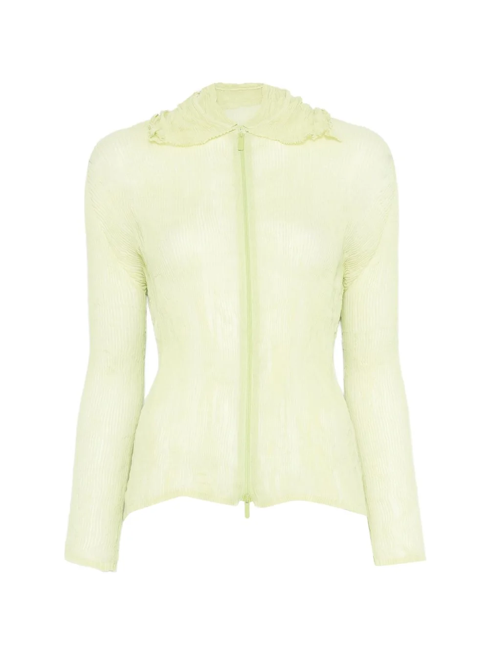 ruffled zip-fastening shirt Highlights - Green - Zip closure - Long sleeves - Ruffled collar Imported Composition Polyester 100% Washing instructions Machine Wash