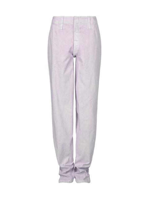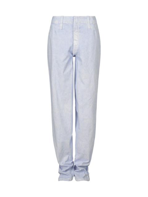 These pants are characterized by their sculpture-like texture and substantial fabric feel. A high-density twill fabric is coated with white pigment, which is then partially removed to reveal the base fabric color, resulting in a unique plaster-like texture. The way the pigment comes off varies between individual pieces, giving each one a different appearance. Due to the manufacturing process, the material texture varies from item to item. Please note this in advance. Product Information Material: 100% cotton Made in Japan Waist Specifications:Buttons / Belt Loops Front Opening:Zip Fly Pocket (Position):Front And Back Sides Others:Button (Rear)
