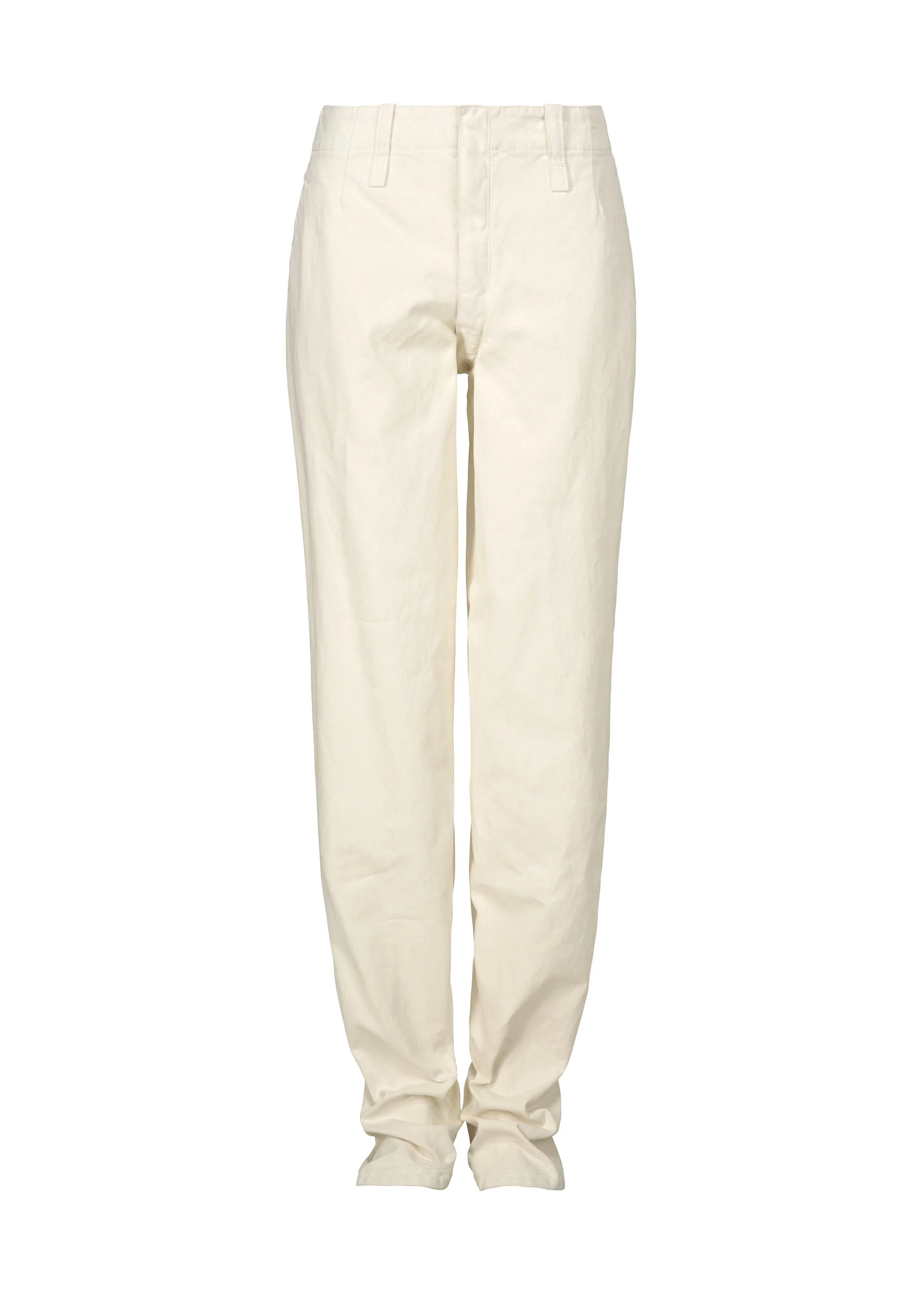 These pants are characterized by their sculpture-like texture and substantial fabric feel. A high-density twill fabric is coated with white pigment, which is then partially removed to reveal the base fabric color, resulting in a unique plaster-like texture. The way the pigment comes off varies between individual pieces, giving each one a different appearance. Due to the manufacturing process, the material texture varies from item to item. Please note this in advance. Product Information Material: 100% cotton Made in Japan Waist Specifications:Buttons / Belt Loops Front Opening:Zip Fly Pocket (Position):Front And Back Sides Others:Button (Rear)
