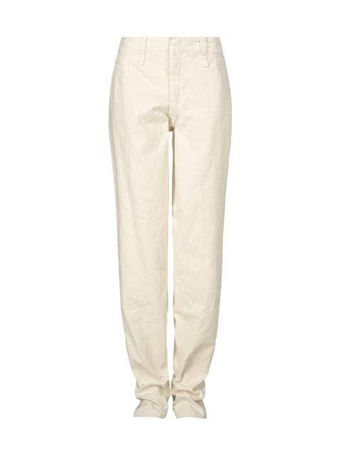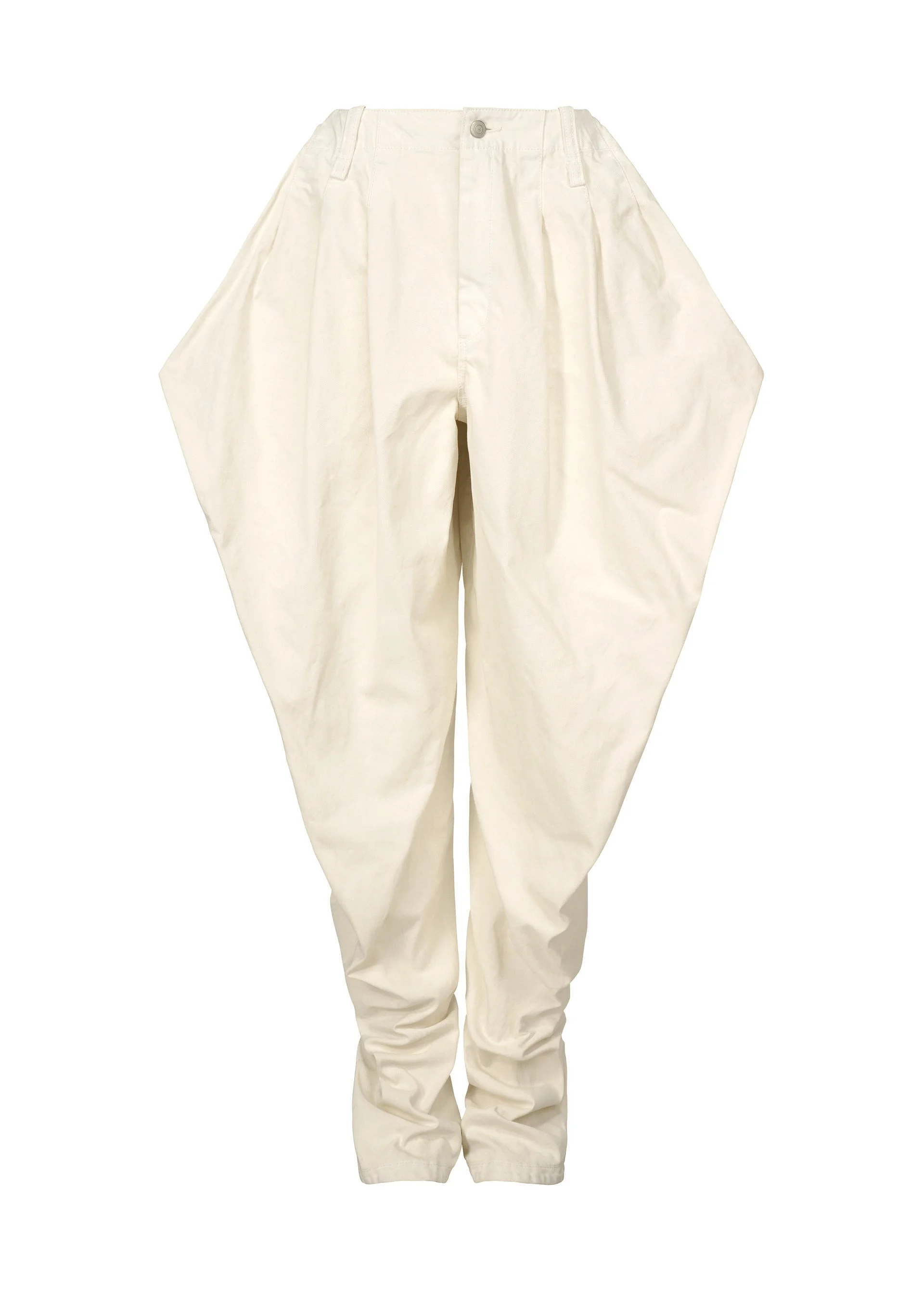 These pants are characterized by their sculpture-like texture and substantial fabric feel. A high-density twill fabric is coated with white pigment, which is then partially removed to reveal the base fabric color, resulting in a unique plaster-like texture. The way the pigment comes off varies between individual pieces, giving each one a different appearance. Due to the manufacturing process, the material texture varies from item to item. Please note this in advance. Product Information Material: 100% cotton Made in Japan Waist Specifications:Buttons / Belt Loops Front Opening:Zip Fly Pocket (Position):Front And Back Sides