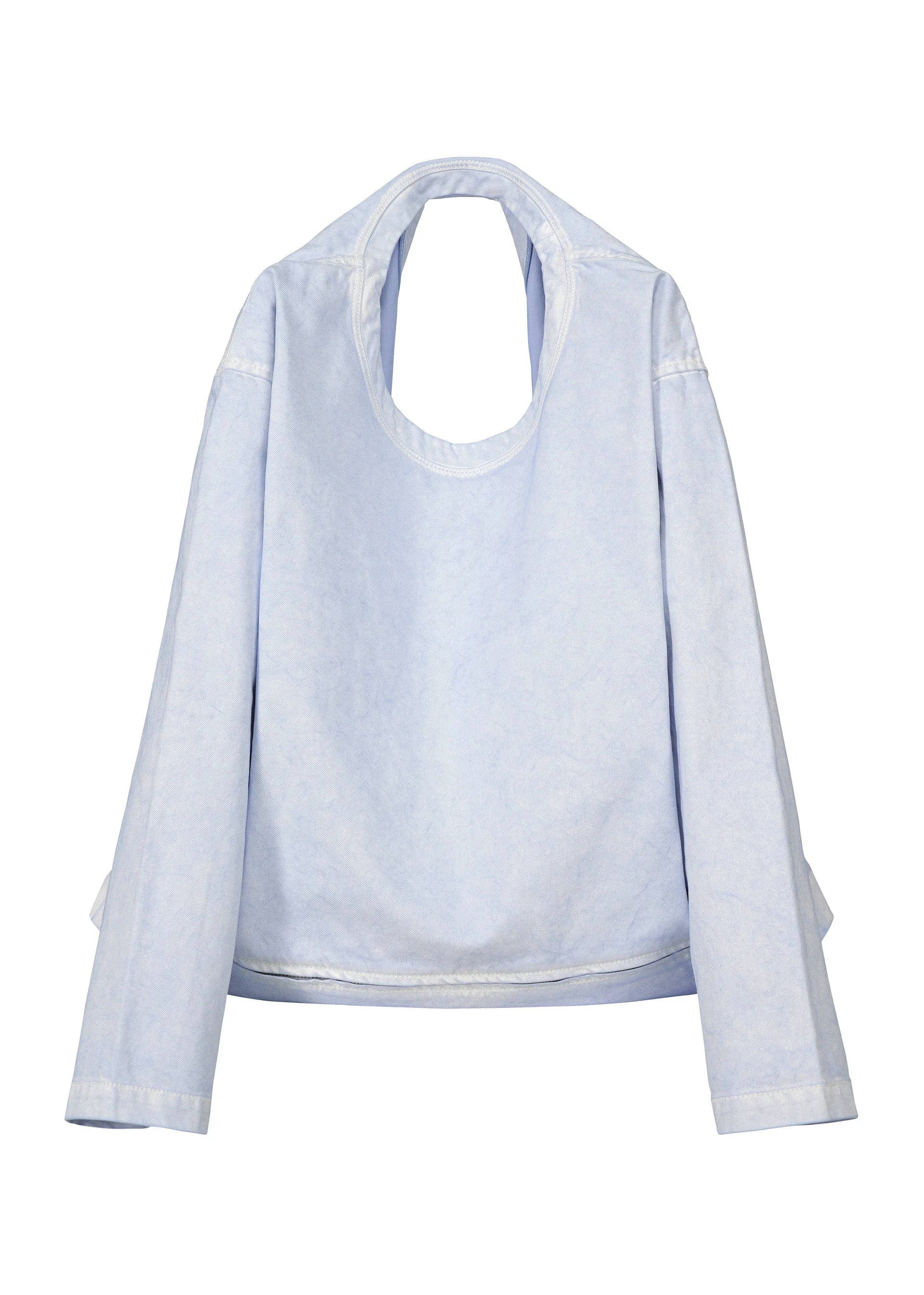 This bag can also be worn as clothing, designed with the concept of treating the body and belongings as one. By creating a bag in a shape that would normally wrap around the body as clothing, unexpected silhouettes and functionality emerge. The design focuses on the unexpected relationship between clothing and bags: the neckline functions as a shoulder strap, the sleeves can be used as shoulder straps, and the zipper can be opened to be worn like a long-sleeve top. Due to the manufacturing process, the material texture varies from item to item. Please note this in advance. Product Information Material: 100% cotton Made in Japan Neckline / Collar:Crew Neck Others:Zipper (Front)