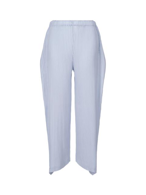 These pleated pants are designed to give the sense of a single quadrilateral piece of cloth. They are made from polyester crepe de Chine, which has a soft texture and beautiful flowy feel. Enjoy the excellent versatility unique to solid colors and the refreshing coloring. Due to the manufacturing process, the texture of this product varies from item to item. Please note this in advance. Product Information Material: 100% polyester Country of origin: Japan Waist specifications:rubber