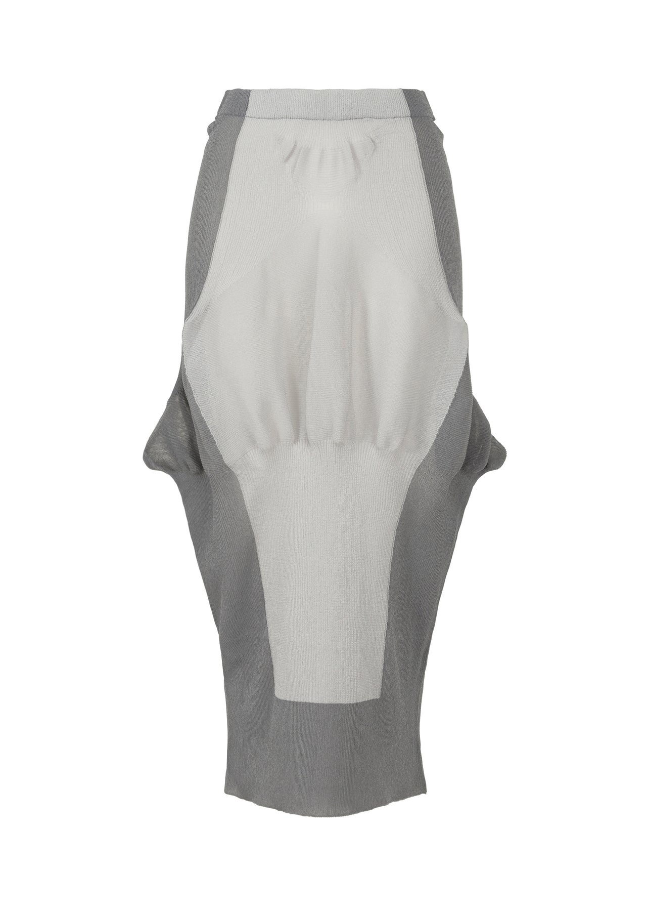 A seamless, subtly translucent knit series, SHAPED NUDE elegantly portrays the body's silhouette through ribbing, garter stitching, and strategic color-blocking. This skirt has a long, slim fit with draping across the thighs and a comfortable elastic waist. Product Code: IM46-KG809 Material: 40% Nylon, 34% Polyester, 26% Triacetate (Knit) Care: Hand wash cold. Only non-chlorine bleach, when needed. Do not tumble dry. Flat dry in the shade. Cool iron. Dryclean any solvent, short cycle.