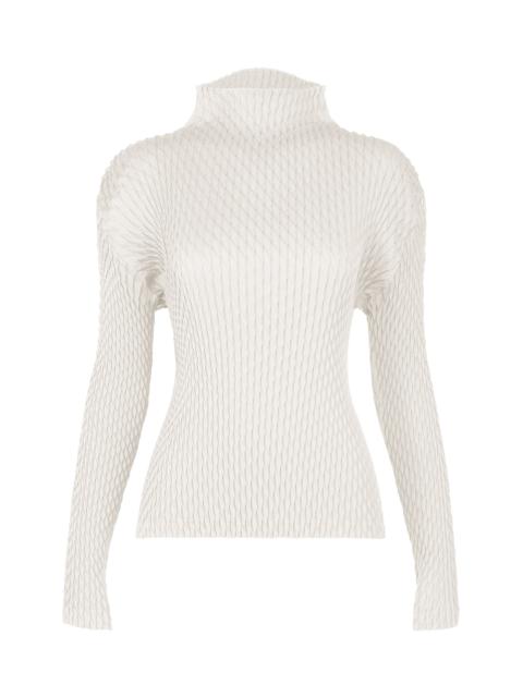 This high-neck, long-sleeved top features pleated fabric with the beautiful sheen of refined satin. Although it is made from polyester fiber, it is characterized by its delicate, glossy texture, made by mimicking the fiber structure of silk using cutting-edge technology. It is pleated twice and designed to have a simple silhouette that moderately hugs the body. The size of this product varies slightly from item to item. Please note this in advance. Product Information Material: 100% polyester Made in Japan Neckline / Collar:High neck