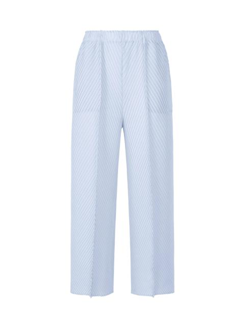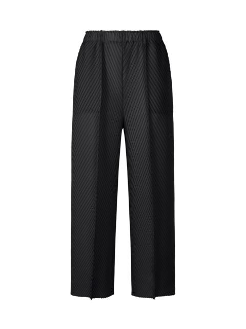 These wide pants are made with polyester crepe de Chine fabric known for its soft texture and beautiful drape. The garment creates a flowing, soft form by pleating parts of the fabric. The pleats create a voluminous silhouette despite its lightweight feel and simple construction. The size of this product varies slightly from item to item. Please note this in advance. Product Information Material: 100% polyester Made in Japan Waist Specifications:Rubber Pocket (Position):Both Sides
