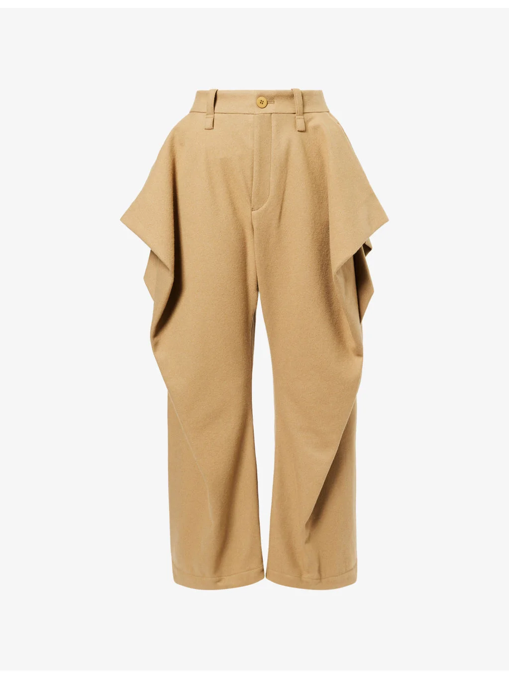 PRODUCT DETAILS - Issey Miyake wool-blend trousers - 85% wool, 15% nylon - Exposed button and concealed zip-fly fastening at front - Relaxed fit, mid-rise, wide-leg, structured waistband with belt loops, two side slip pockets, distinctive side panels, two rear welt pockets, drawcord cuffs - Dry clean - Made in Japan - Size 1: rise 14in / 35.5cm, inside leg 28in / 71cm, leg opening 20in / 51cm - Model is 5ft 10in/1.78m and wears a size 1 - Midweight, non-stretch - This garment’s sizing is based on height and doesn’t conform to standard sizes. Please refer to the size guide for your desired length. Ref: R04556786