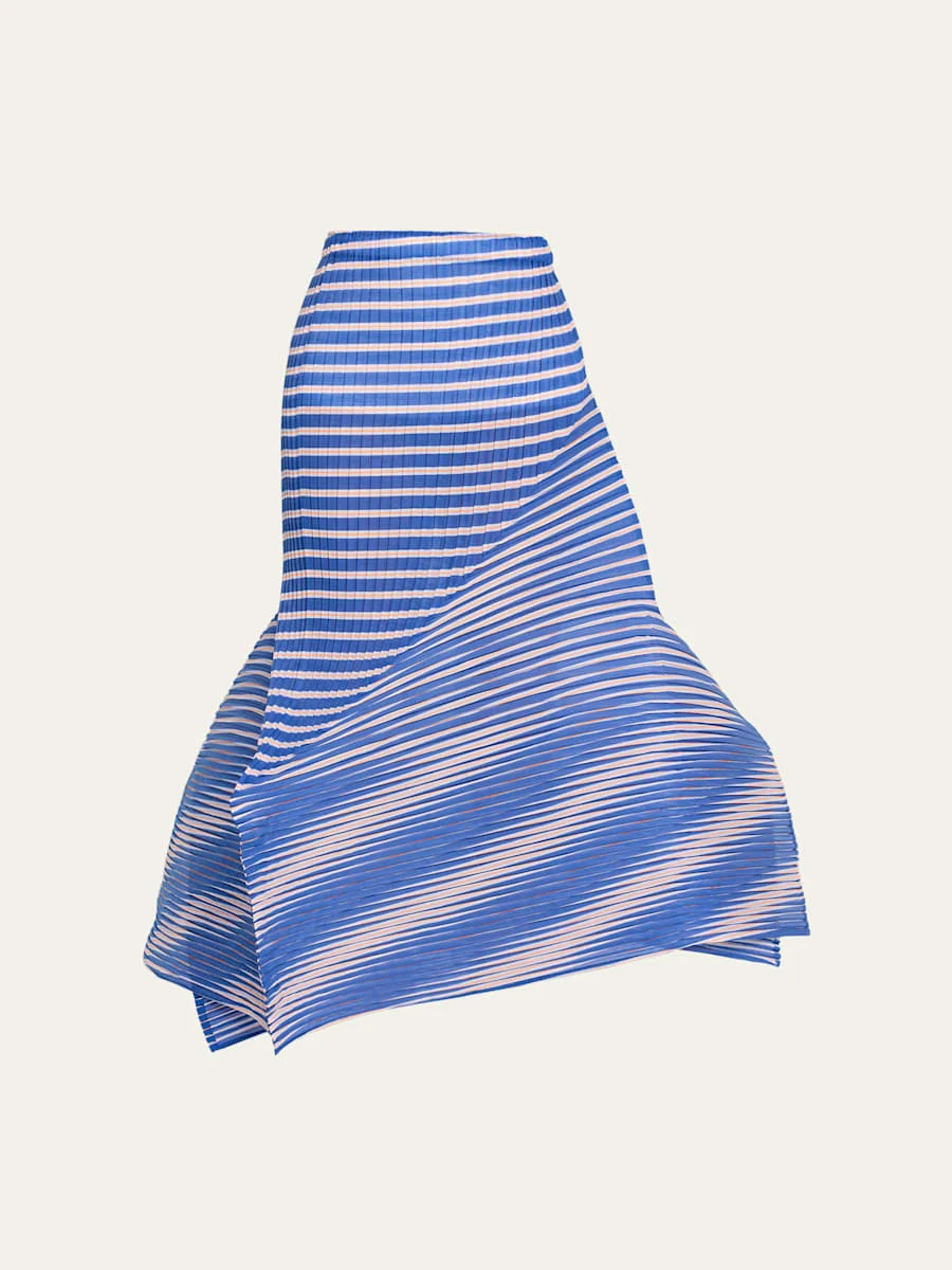 This skirt from Issey Miyake is crafted in a generic striped mechanical pleat design, sculpted to create a unique, artful silhouette. Mid waist Flare silhouette Hem falls below the knee Sculpted hem Pullon style Polyester Machine wash Made in Japan SIZE amp; FITModel measurements: 5'10" tall Model is wearing a US size 4/Small