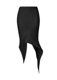 This knit skirt is characterized by its structure resembling drooping quadrilateral paper and light, comfortable feel. It is knitted using highly stretchy recycled polyester thread combined with delicate, glossy triacetate thread in a striped pattern. Quadrilateral parts, created by blending garter and rib knitting techniques, are assembled with minimal sewing to achieve a soft form. Product Information Material: 58% polyester, 42% triacetate Country of origin: Japan Waist specifications:rubber