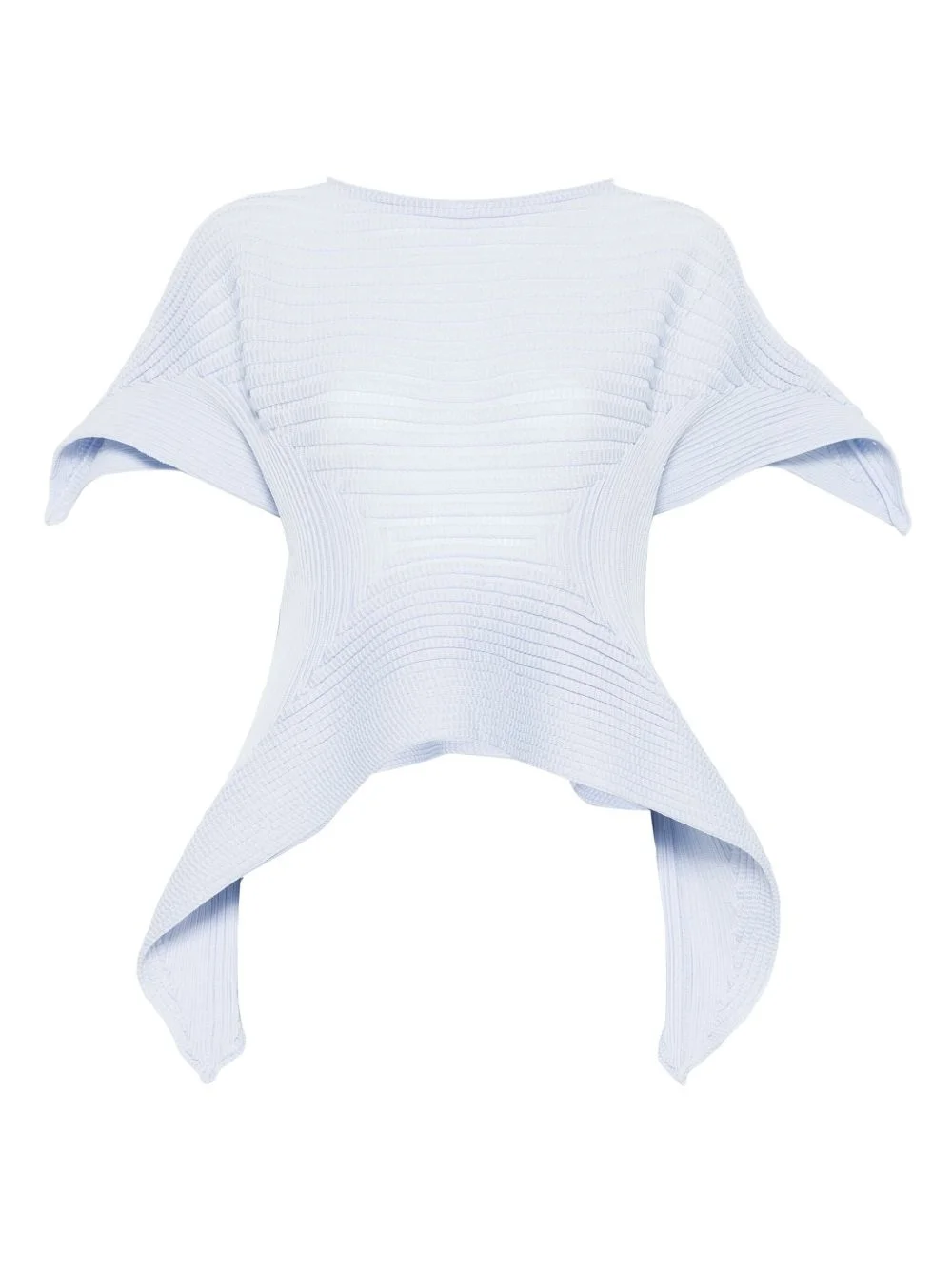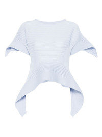 Subdued knit top Highlights - Light blue - Slash neck - Short sleeves - Draped design Imported Composition Polyester 58%, Triacetate 42% SIZE & FIT Model measurements Height 5 ft 9 in(1.75 m) Bust/Chest 34.64 in(88 cm) Hips 36.61 in(93 cm) Waist 26.37 in(67 cm) FittingInformation Designed for a slim fit that sits just away from the body offering a close yet comfortable fit The pleated construction on this piece allows for additional movement and flexibility in the fit Washing instructions Hand Wash