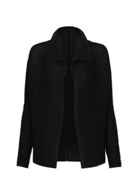 This stretchy long-sleeved cardigan features vertical and horizontal pleats on recycled polyester material. The size of this product varies slightly from item to item. Please note this in advance. Product Information Material: 100% Polyester Country Of Origin: Philippines Neckline / Collar:High neck