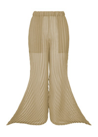An elegant, sculptural series, WANDER features hand-pleated folds that form three-dimensional, leaf-like designs with a subtle transparency. These pleated pants have a slim fit through the thigh and a dramatic angular flare at the hem. They include two side pockets and an elastic waist.