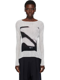 Garment-pleated sheer recycled polyester tricot T-shirt. · Round neck · Graphic printed at front Supplier color: Light 100% recycled polyester. Made in Japan 252809F096004