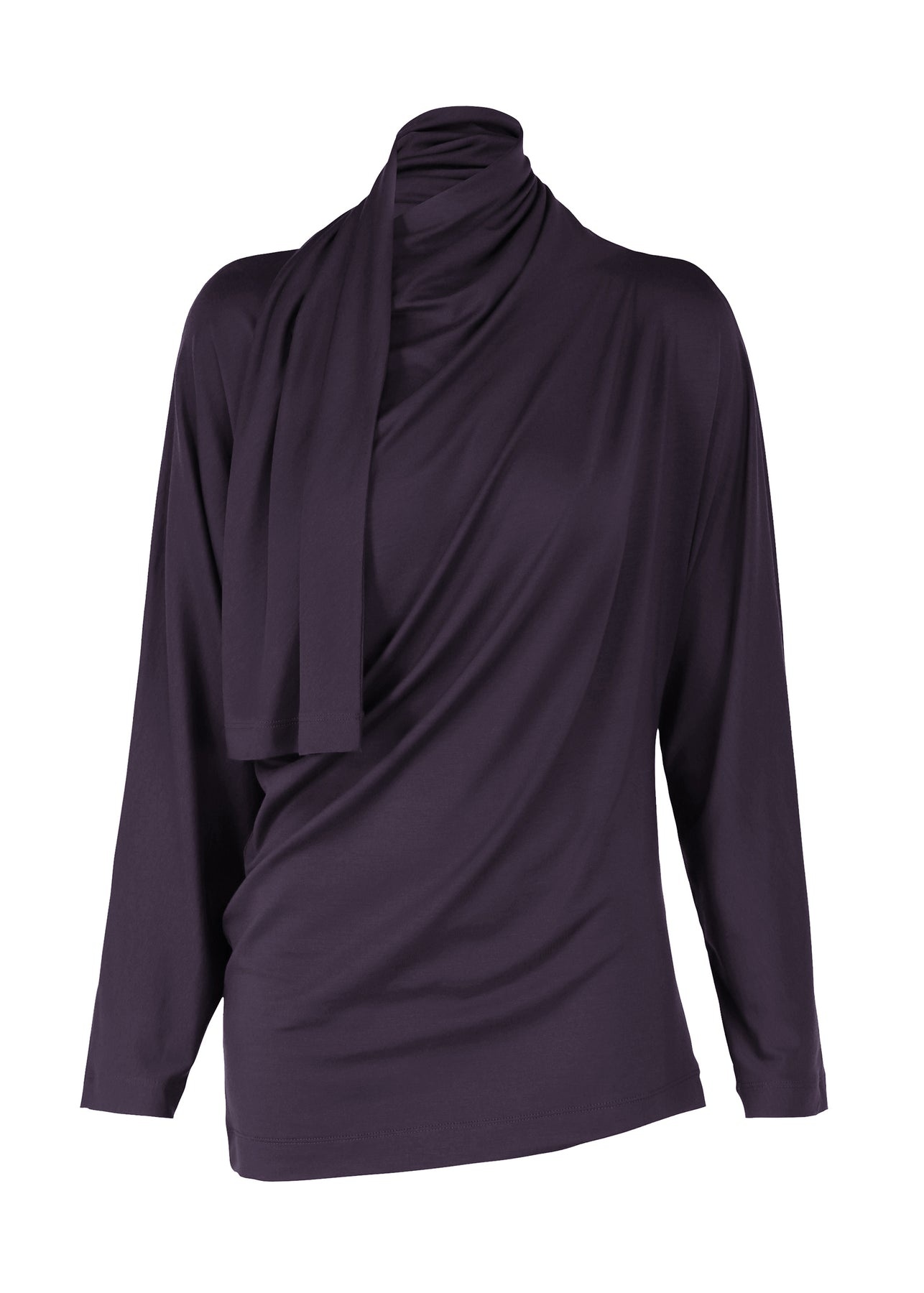 Made from a stretchy jersey material, WIND SMOOTH JERSEY is a comfortable innerwear series with rolled collar details. This long sleeve top has a twisted, slim fit and an attached stole that can be wrapped elegantly around the neck. Product Code: IM48-JK216 Material: 95% Lyocell, 5% Polyurethane (Knit) Care: Hand wash cold. Only non-chlorine bleach, when needed. Do not tumble dry. Line dry in the shade. Cool iron. Dryclean, petroleum solvent only, short cycle.