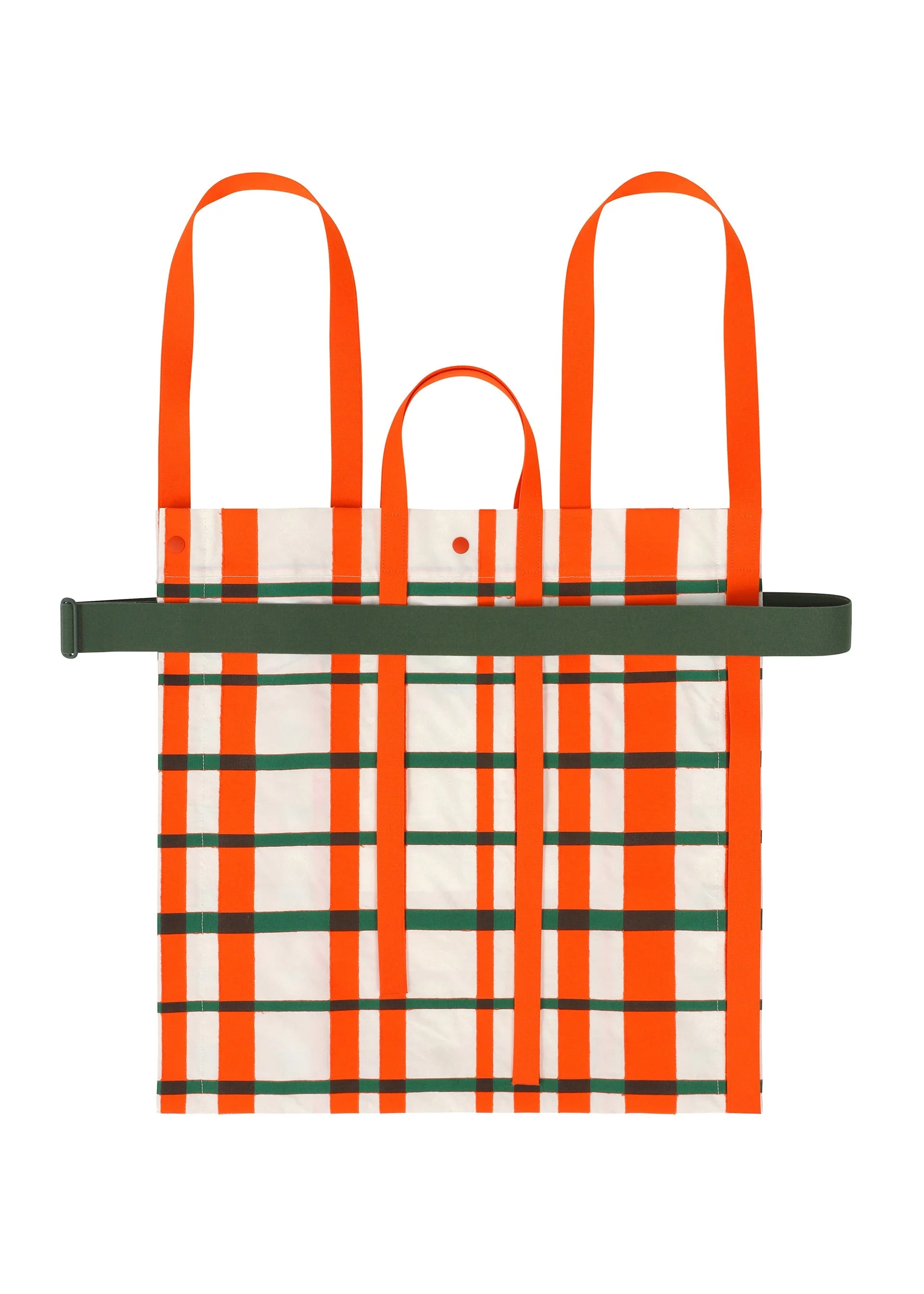 This tote bag is made from canvas bonded to polyester fabric with a washed feel, and features a pattern created by partially melting the fabric. The use of the same canvas material for the handles gives the impression of the pattern seamlessly flowing out and fluttering in the wind. Product Information Material: Base fabric: 100% polyester; Pattern portion: 100% cotton (resin bonding) Strap: 100% cotton Partial use: synthetic leather Country of origin: Japan inside pocket:can be Opening/closing part:button