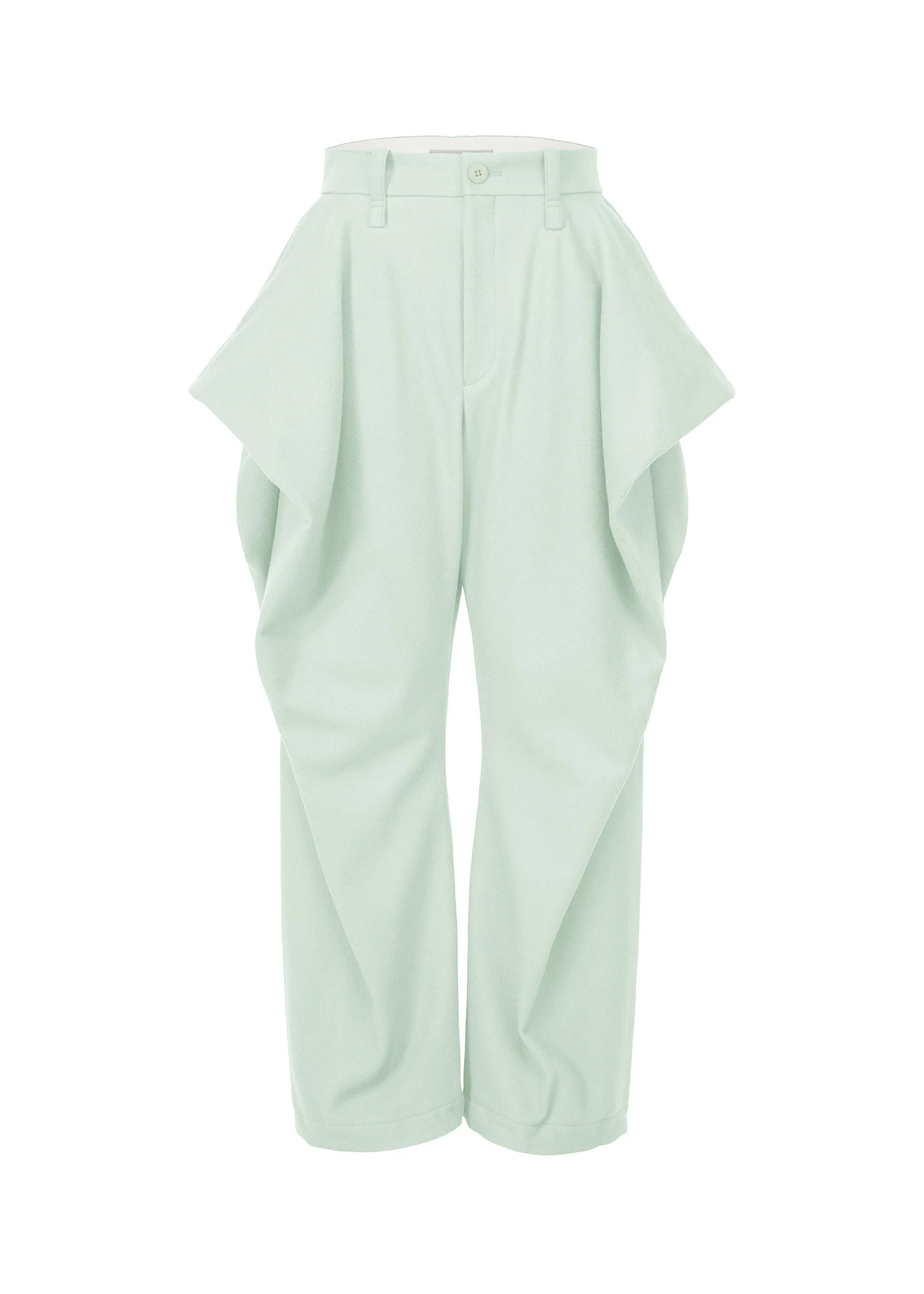 These pants are made from puffy wool fabric, offering a sturdy, thick feel and warmth. The weft uses mulesing-free wool gently sheared from sheep raised in natural environments, making it a material considerate of both animals and the global environment. They have drawcords at the hems, allowing you to adjust the silhouette as you like. Product Information Material: 85% wool, 15% nylon Made in Japan Waist specifications:Buttons / Belt loops Front opening specification:Zip fly Pocket (position):Front and back, both sides others:Drawcord (hem)