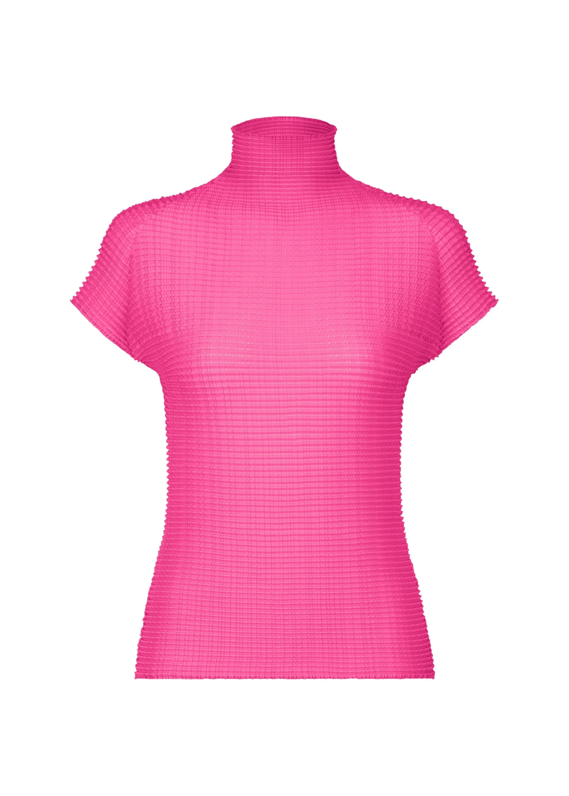 This stretchy high-neck top with French sleeves features vertical and horizontal pleats on recycled polyester material. The size of this product varies slightly from item to item. Please note this in advance. Product Information Material: 100% polyester Made in the Philippines Neckline / Collar:High neck
