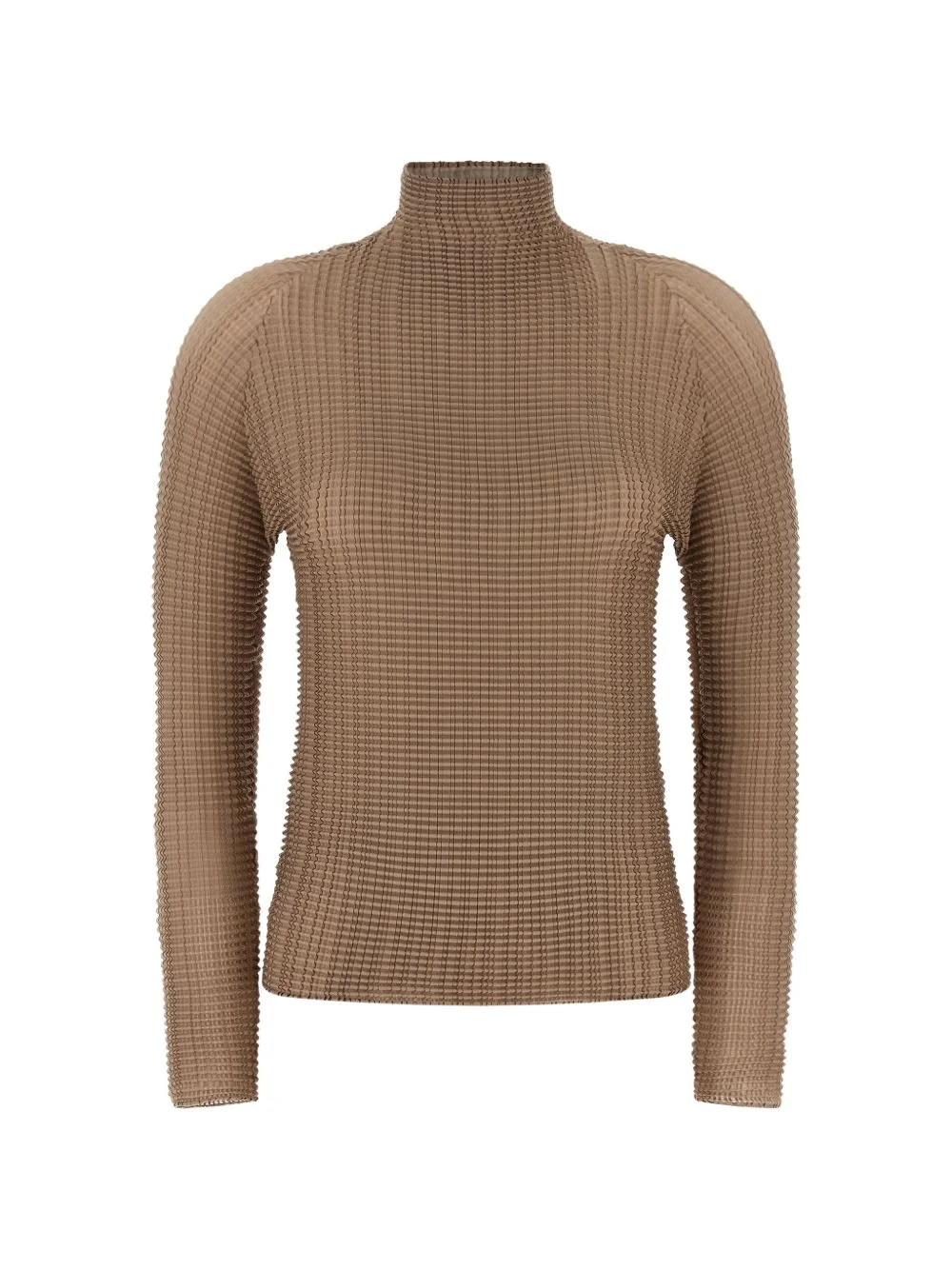 textured high-neck top Highlights - Dark beige - Textured - High neck - Long sleeves Imported Composition Recycled Polyester 100% Washing instructions Read Manufacturer Guidelines