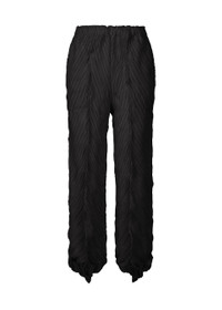 These pants are characterized by the crisp look unique to high-twist polyester material. After applying straight pleats, large-scale twist processing is conducted while basting the fabric. Coupled with the fabric's texture, this creates a look reminiscent of twisted paper. The size of this product varies slightly from item to item. Please note this in advance. Product Information Material: 100% polyester Country of origin: Japan Waist specifications:rubber Pocket (position):both sides