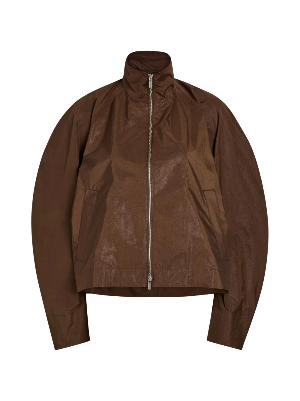 zip-fastening jacket Highlights - Dark brown - Zip fastening - High neck - Side pockets Imported Composition Polyester 78%, Paper 22% Washing instructions Read Manufacturer Guidelines