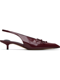 Polished calfskin heels. · Pointed toe · Bow accent at vamp · Elasticized slingback strap · Lacquered kitten heel with rubber injection · Calfskin sole with rubber injection · Heel: H1.5" Part of the La Croisiere collection. Supplier color: Burgundy Upper: calfskin. Sole: calfskin, rubber. Made in Italy 252553F122007