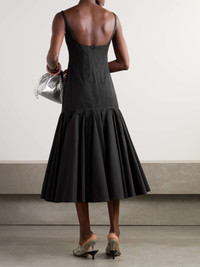 EDITORS'NOTES For Jacquemus' Spring '25 collection, the founder imagines his eponymous label through a '50s lens, resulting in elegant styles like this 'Agave' midi dress. It's made from panels of cotton-poplin that are fitted through the body and pleated at the hem for a voluminous shape and pretty movement. SIZE & FIT Model measurements: - Fits true to size, however those who are between sizes should take the smaller size - Designed for a close fit - Mid-weight, non-stretchy fabric - Model is 177cm/ 5'10" and is wearing a FR 34 - Bust: 80cm/ 31.5" - Waist: 60cm/ 23.5" - Hip: 89cm/ 35" DETAILS & CARE - Black cotton-poplin - Concealed hook and zip fastening at back - 100% cotton - Dry clean