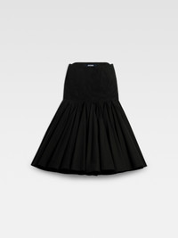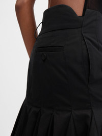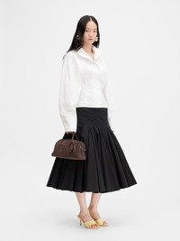 LA CROISIERE Flared midi skirt - High-waisted - Cotton poplin - Below-the-knee length - Hidden zipper and button closure - Stitched pleats - Lined until the hip - Flared volume below the hip with tulle lining - Non-pleated waistband in the back - “J” belt loop - Trompe l’oeil back pocket The model is 180cm and wears a size 34 100% Cotton / Lining: 55% Cotton - 45% Polyester Made in Bulgaria Ref. 251SK076-1519-990