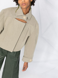 Albi boxy jacket You're not afraid to take style risks. Which is why we're certain you'll be drawn to the slit detailing on this Albi jacket from Jacquemus. We can't think of anyone better suited to this unconventional design than you. Imported Composition Lining: Cotton 55%, Polyester 45% Outer: Virgin Wool 80%, Polyamide 20% SIZE & FIT Model measurements Height 5 ft 11 in(1.8 m) Bust/Chest 31.49 in(80 cm) Hips 35.82 in(91 cm) Waist 24.8 in(63 cm) Measurement SLEEVE LENGTH 22.44 in(57 cm) LENGTH 22.04 in(56 cm) BUST 43.3 in(110 cm) FittingInformation This piece fits true to size. We recommend you get your regular size Cut for a loose fit Made with a mid-weight non-stretch fabric Washing instructions Dry Clean Only