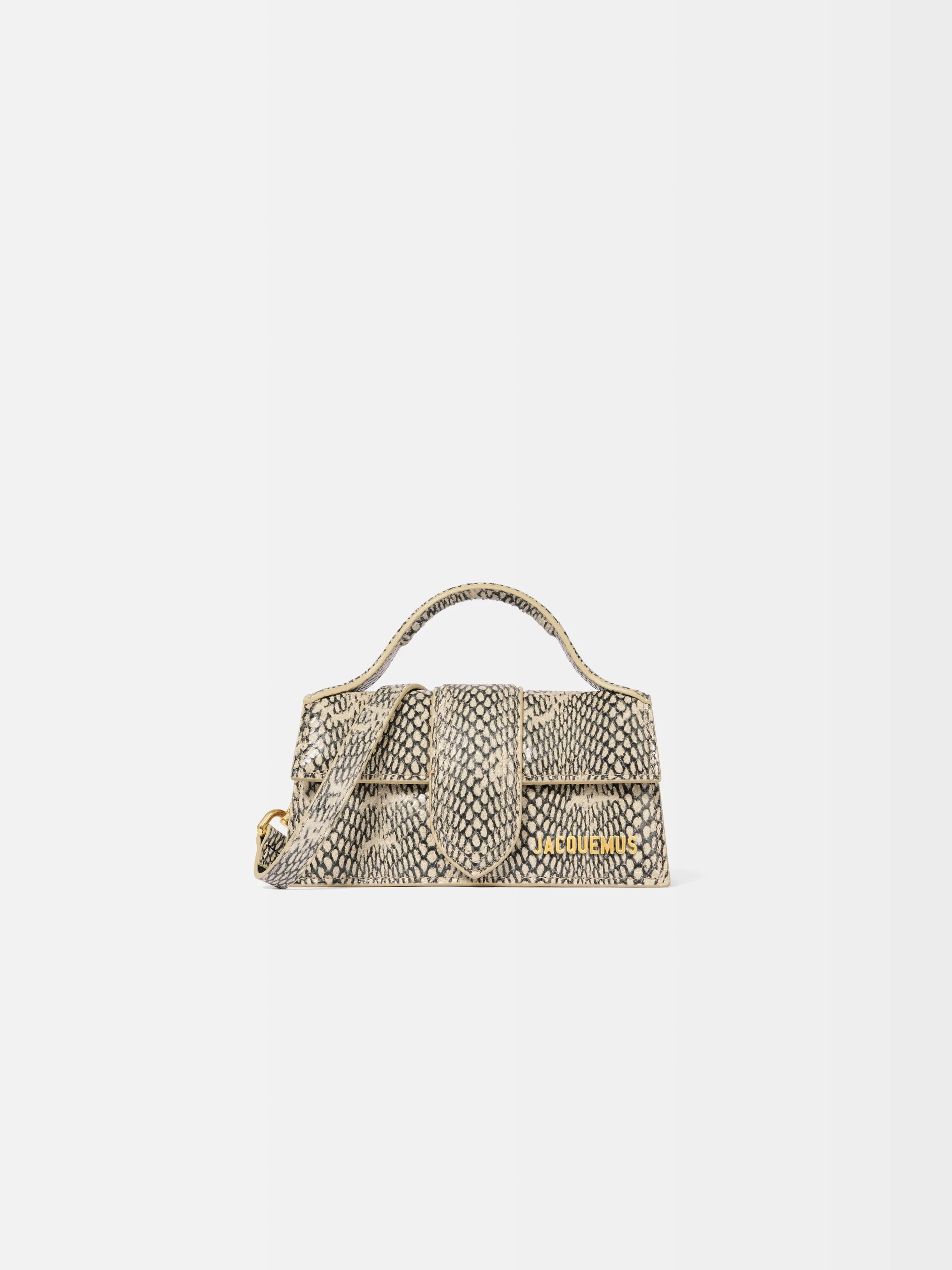 Mini flap bag - Structured bag in cobra-embossed leather - Reinforced handle - Magnetic flap - Removable, adjustable shoulder strap - Engraved lobster clip - Card slot patch pocket on back - Topstitching - Gold metal logo and hardware - Fully lined - Dyed edges - 6,9 in x 3,5 in Each leather is unique and has been carefully selected by our team. To maintain the original condition of this item, we recommend to avoid direct and over-exposure to light and contact with cosmetics, water or heat. We advise to store this item into the dust bag in a dry place. 100% Goat Leather / Lining: 100% Cotton Made in Italy Ref. BAW00006AC05G04150
