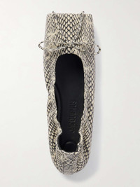 EDITORS'NOTES Geometric shapes often inform Jacquemus' designs - this is clear by the sleek squared-off toes of these ballet flats. They're made from snake-effect leather and have elastic vamps for a secure and comfortable fit. SIZE & FIT - Fits true to size, take your normal size - French sizing DETAILS & CARE - Slight heel - Snake-effect leather (Goat) - Slip on