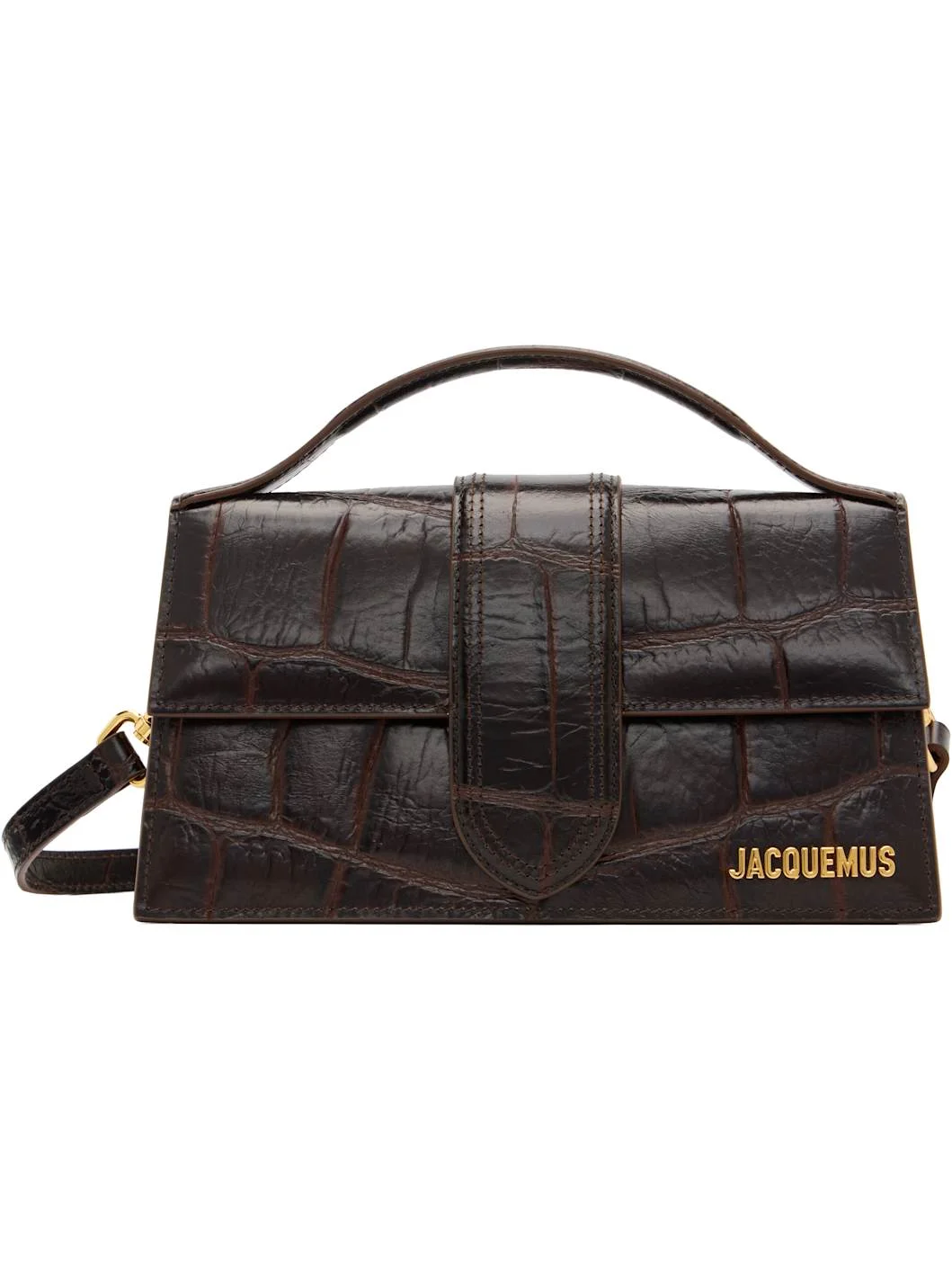 Croc-embossed calfskin shoulder bag. · Fixed carry handle · Adjustable and detachable crossbody strap · Logo hardware at face · Card slot at back face · Magnetic flap · Card slot at interior · Cotton twill lining · Logo-engraved gold-tone hardware · H5" x W9" x D2.75" Supplier color: Dark brown Body: 100% calfskin. Trim: 100% leather. Lining: 100% cotton. Made in Italy 261553F048041
