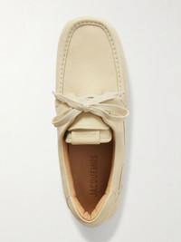Jacquemus' 'Batto' loafers recall classic boat styles. Made from nubuck, they have tonal laces and gripped rubber soles for traction. The logo is embossed at the heel and tongue. Details & Care - Slight heel - Cream nubuck (Calf) - Lace-up front