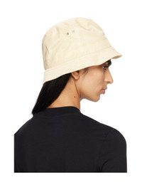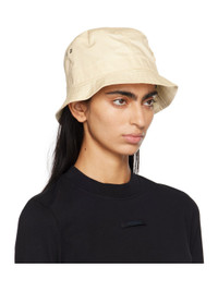 Nylon-blend twill bucket hat in beige. · Embroidered logo flag at face · Quilted brim · Patch pocket at side · Metal eyelets at back face · Cotton poplin lining Part of the Le Chouchou collection. Supplier color: Pale yellow Body: 90% polyamide, 10% acrylic. Lining: 100% cotton. Made in Italy 241553F015010