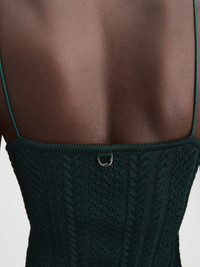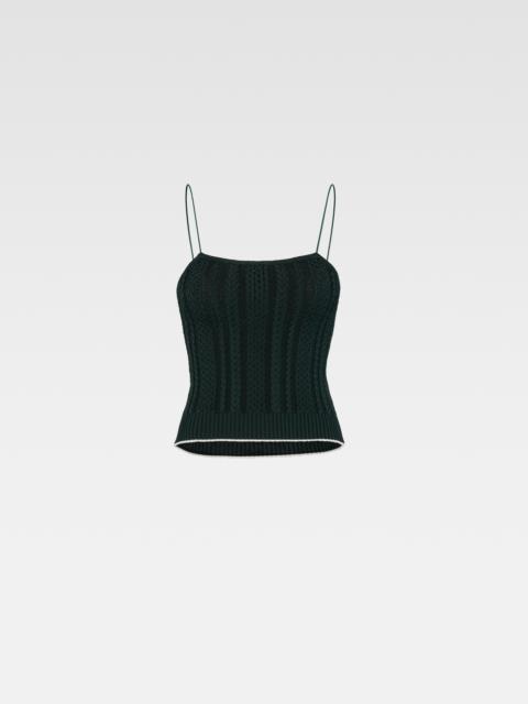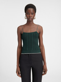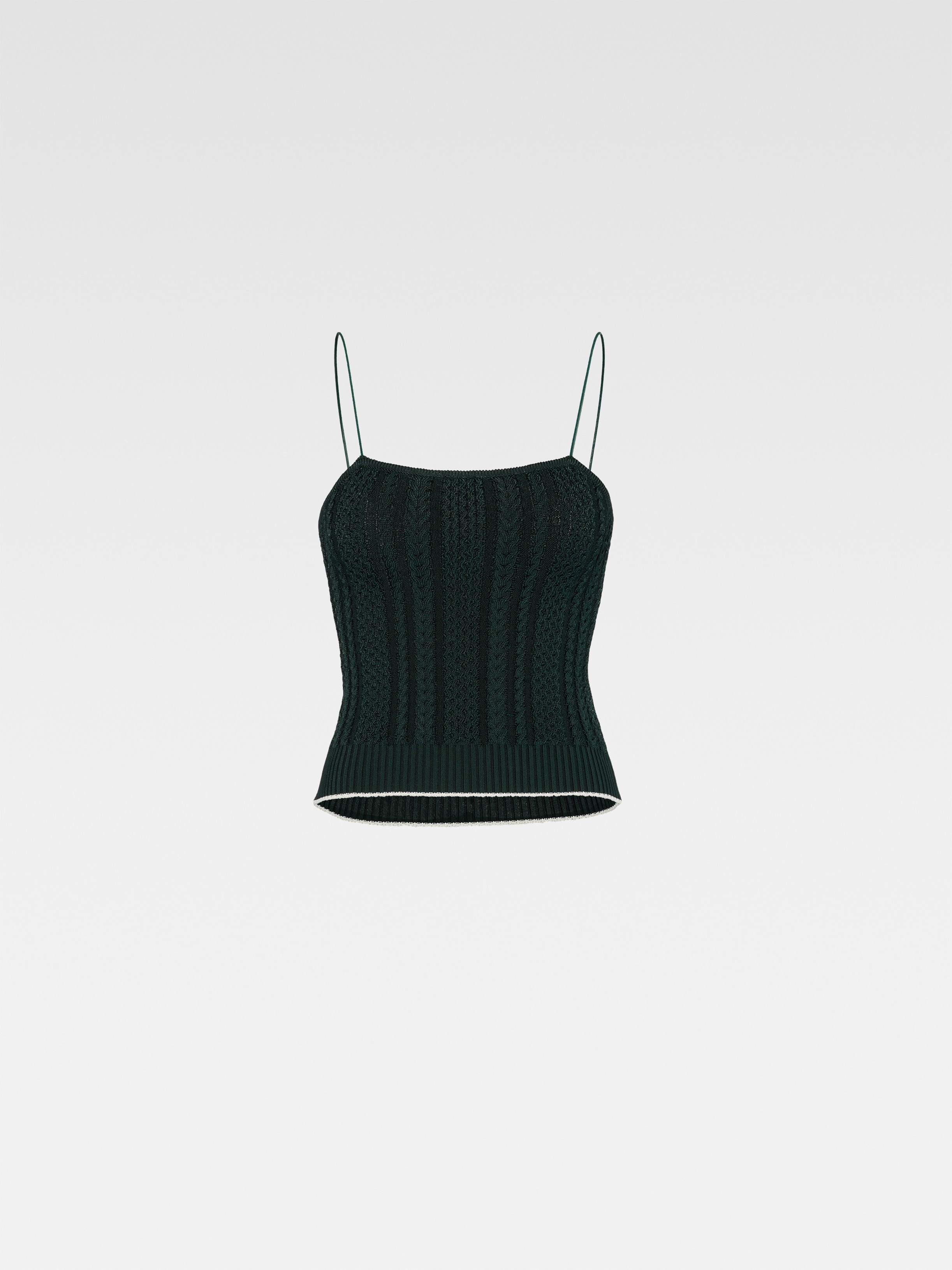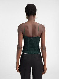 LES SCULPTURES Rib knit camisole - Fitted shape - Twisted rib knit - Spaghetti straps - Ribbed hem - D-ring on the back The model is 187 cm and wears a size XS 94% Viscose - 4% Polyamide - 2% Elastane Made in Bulgaria Ref.241KN452-2369-590