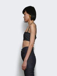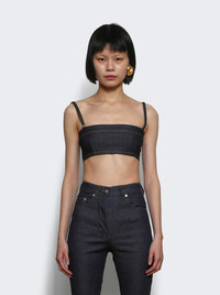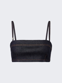 Details - Bandeau style bralette top - Denim with contrast topstitching - Metal circle detailing on straps - Material: Cotton Size Information: Vendor Color Code: Brand Style: TOW00813AD00041 Designer/Brand: JACQUEMUS