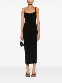 La Robe Fiesta midi dress Highlights - Black - Stretch-design - Knitted construction - Glitter detailing - Gold-tone logo plaque - Strap detailing - Perforated detailing - Cut-out detailing - Scoop neck - Adjustable spaghetti straps - Rear slit - Straight hem - Mid-length Imported Composition Viscose 60%, Polyester 26%, Polyamide 12%, Elastane 2% Washing instructions Hand Wash