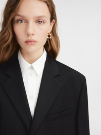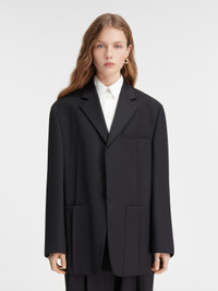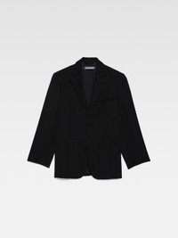 Les Classiques Square jacket - Boxy cut inspired by the men's wardrobe - Wool suiting fabric - Notched lapel - Chest welt pocket and large patch pockets - Hidden button placket - Inverted darts down the front - Interior welt pocket The model is 180 cm and wears a size 34 100% Virgin wool Made in Romania Ref. 213JA101-1333-990