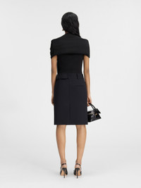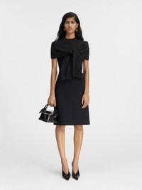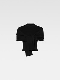 LES SCULPTURES Faux cardigan top - Fitted shape - Wool - Ribbed collar, cuffs and hem - Trompe l’oeil wrapped cardigan sleeves The model is 171 cm and wears a size XS 85% Viscose - 10% Polyamide - 5% Elastane Made in Portugal Ref.241KN373-2378-990