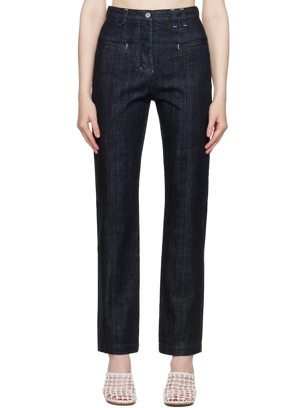 Non-stretch denim jeans. · Belt loops · Logo locker loop at front waistband · Four-pocket styling · Button fly · Logo printed at back pocket · Logo-engraved silver-tone hardware · Contrast stitching in white Part of the La Croisiere collection. Supplier color: Dark navy Body: 100% cotton. Lining: 65% polyester, 35% cotton. Made in Italy 251553F069013